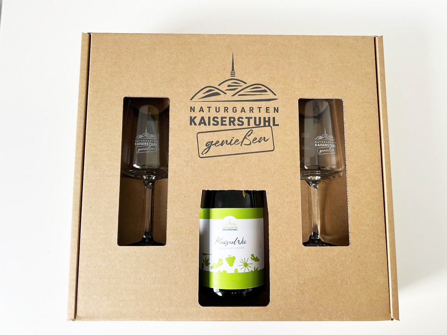Inhalt: Karton mit Inlay + 2 Naturgarten Kaiserstuhl Weingläser vom Qualitätshersteller Zwiesel.