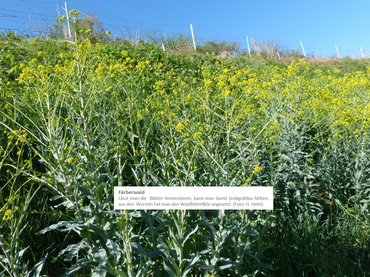 | Färberwaid-Blüte | Ende April | An Böschungen, v.a. im inneren Kaiserstuhl zw. Oberbergen und Oberrotweil |